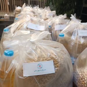 با کمک و همیاری خیرین محترم سرای مهربانی، 30 بسته مهربانی (شامل: برنج، حبوبات (عدس، لوبیا)، رب گوجه فرنگی، روغن خوراکی (1عدد)، تن ماهی، ماکارونی و سویا) تهیه و آماده گردید.